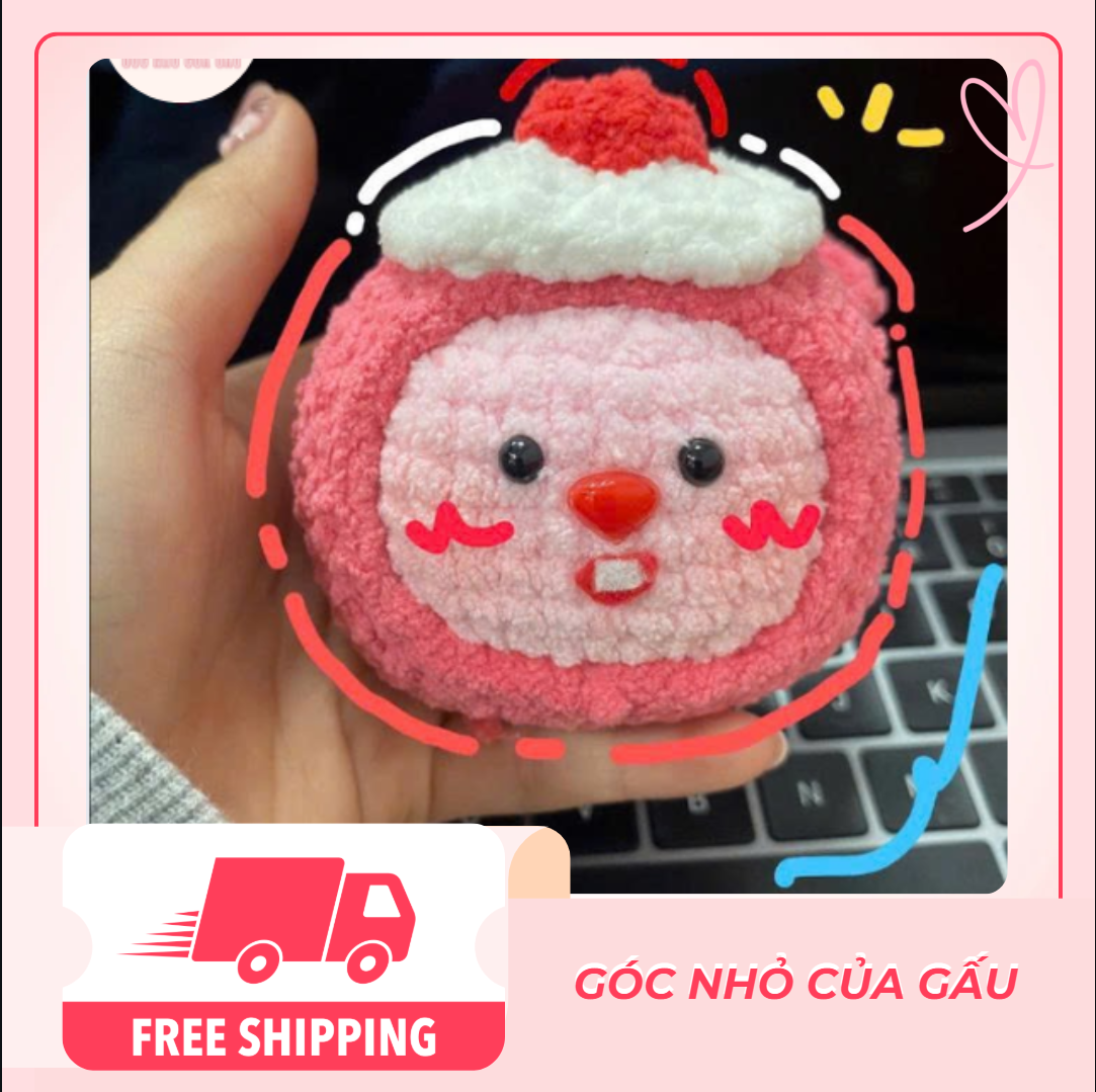 Chiếc gấu bông Loppy Dâu Tây siêu đáng yêu được móc hoàn toàn bằng tay từ sợi len nhung Hàn Quốc mềm mịn, an toàn cho cả trẻ nhỏ. Thiết kế tròn xoe, má hồng, mũi đỏ, và chiếc nón kem dâu bé xinh trên đầu khiến ai nhìn cũng phải “tan chảy”!